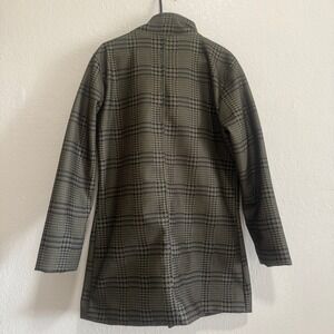Flex Supply Mens Houndstooth Button Up Mid Length Coat Jacket Olive Black XL