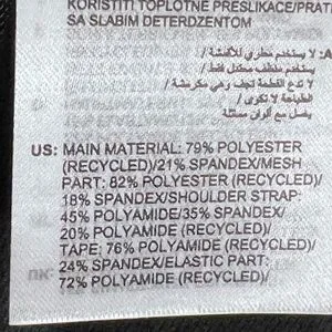 79% Recycled polyester, 21% Elastane Machine wash cold delicate, hang dry