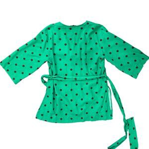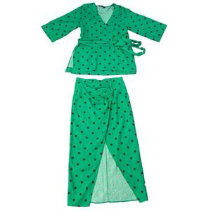 Zara Green Brown Polka Dot Midi Skirt Half Sleeve Top Set size S Blogger Fave