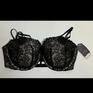 Chic black lace design. Underwire support. Adjustable straps for a custom fit.