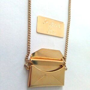 Vintage Gold-Tone Necklace with working Mailbox Pendant containing "I Love You" Note. Chain is approximately 23-24" long with a Spring Ring Clasp. Clasp is stiff with age but does open and close. Overall, necklace is in good vintage condition.