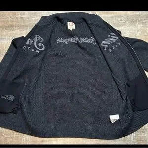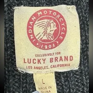 Indian Motorcycle Men's Large Full Zip Gray Knit Jacket Lucky Brand
