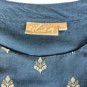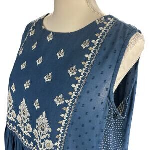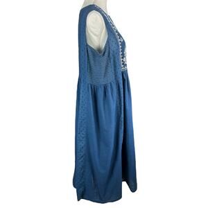 Utsa Jumper Dress Size XXL Blue Embroidered Floral Cottagecore Cotton Boho Midi