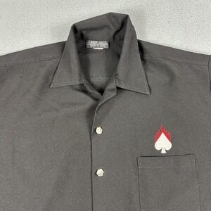 Johnny Suede Shirt Mens XL Black Bowling Flaming Card Suits Made USA Dice