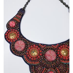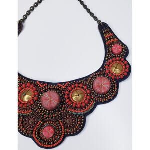 Vintage CHICOS Heavily Beaded on ? Leather Collar Statement Necklace