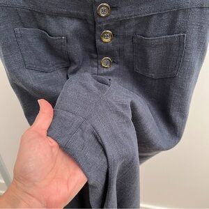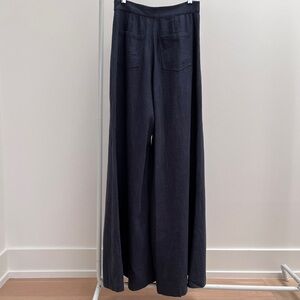 STAUD Martin linen blend wide leg pants navy blue high waisted patch pockets