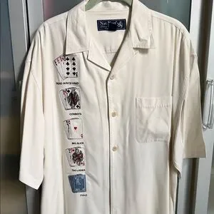 Nat Nast Men's Ivory Card Embroidered Shirt