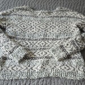 Abercrombie & Fitch Gray V-Neck Sweater with Cozy Knit and Geometric Patterns