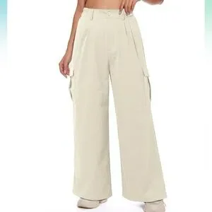 Elevate your style with these chic cream wide-leg cargo pants. Perfect for any occasion, these pants offer both comfort and elegance.