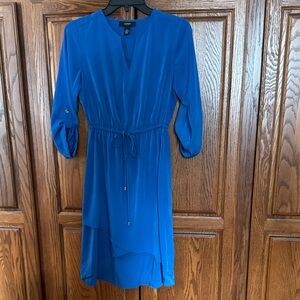Chic blue midi dress with a flattering silhouette. Features a drawstring waist and three-quarter sleeves. Wore one time only. Perfect condition!