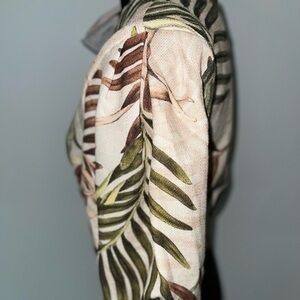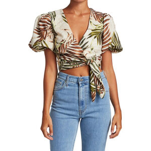Embrace a chic tropical look with this cropped design complete with opulent puff sleeves.