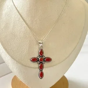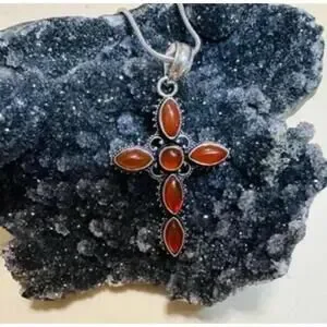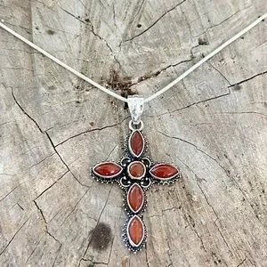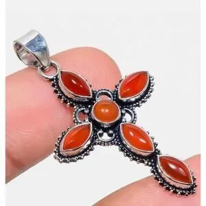 925 Sterling Silver Carnelian cross Necklace Gemstone Womens Jewelry handmade
