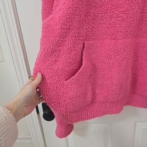 Skims Cozy Knit Lounge Hoodie In Hot Pink Size M