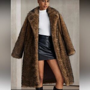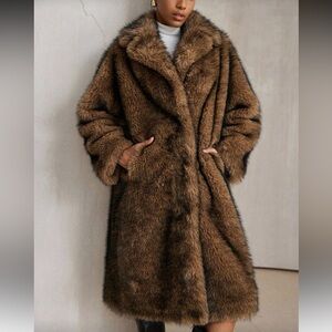 3 LEFT ❤️ Vintage Style Faux Fur Jacket Chocolate Brown Mid Length Winter Jacket