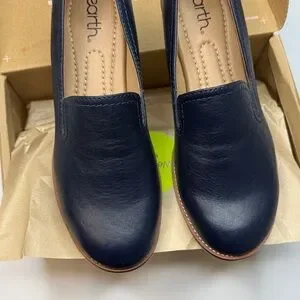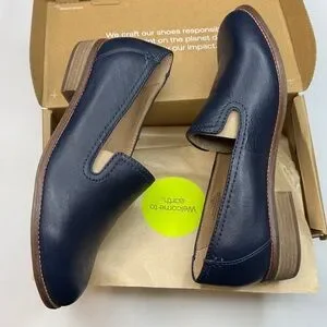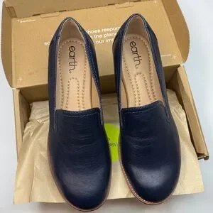 Earth Women's Edna Flat Slip-On Wide Width Loafers- Dark Blue- Size 8W