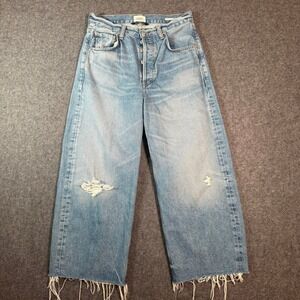 Citizens of Humanity Ayla Wide Leg Crop Jeans Distressed Frayed Hem Denim Sz 28