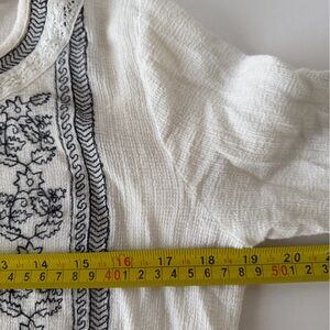 Chic blouse with floral embroidery. Cream base with black detailing. Perfect for versatile styling.