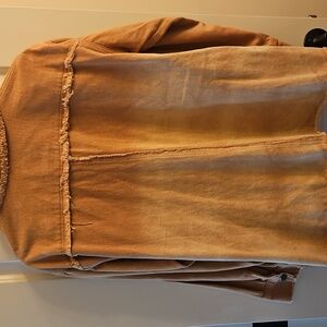 BaeVely, Shacket, Shirt Jacket, Oversized, Distressed, Frayed Hem, Ombre, Tan, Camel, Brown, Denim, Cotton, Snap Button, Pockets, Western, Trendy, Casual, Layering Piece, Bloggers Favorite, Spring, Fall, Transitional, Streetwear, Neutral, Boho, Chic, Utility, Zara, Anthropologie, we the free, free people, Zenana, pink lily