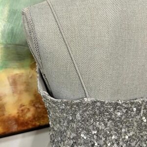 silver Sequin Tulle Spaghetti Strap Gown evening Dress Silver NWOT