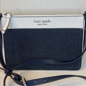 Kate Spade Denim Cameron Blue White Colorblock Top Zip Crossbody NWT