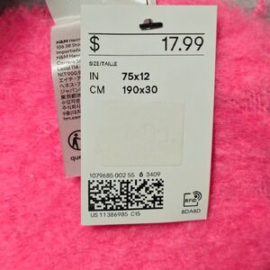 Keywords: H&M, Fuzzy Scarf, Hot Pink, Winter Fashion, Cozy, Warm Accessory, Fringe, Tassel, Soft Texture, Fashionable, Winter Style, Bright Color