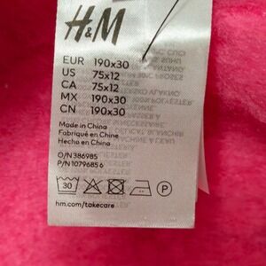 Wrap yourself in vibrant warmth with this plush H&M scarf. The luxuriously soft fuzzy texture invites touch, while the bold hot pink hue instantly elevates any outfit. Generous fringe detailing at the ends adds a playful flourish, creating a cozy yet stylish accessory perfect for combating chilly days. Imagine this scarf adding a pop of color to your winter coat on a brisk walk or complementing your casual weekend look for brunch with friends. This scarf is ideal for adding a cheerful and comforting touch to your cold-weather wardrobe.