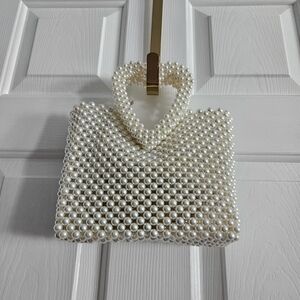 New with tags- From the Target x A New Day 2026 Valentines/Galentines viral collection- Simulated pearl beaded mini tote/satchel bag featuring a heart shaped handle. This cream hardside tote bag is crafted with a woven design made from simulated pearl beads, giving it a playful and eye catching texture. The heart shaped handles add a charming finish and open up to the main compartment that offers ample space for your on the go essentials. Purse measures 7.48 inches height x 9.49 inches width x 2.36 inches depth. This style is selling out fast at Target!