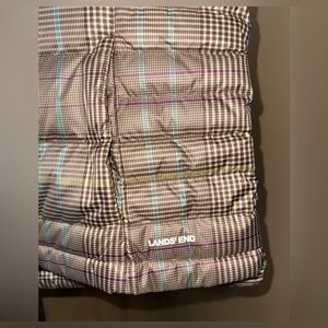 NWT LANDS END Allied Feather Down 600 Puffer Vest Jacket. Size Large. Excellent condition! Great quality! Great Brand!Chic checkered puffer vest by Lands' End. Features a blend of brown and tan with subtle blue accents. Any questions please don’t hesitate to ask.