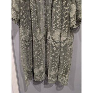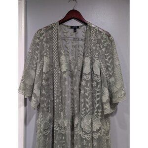 Torrid Women's Lace Kimono Green Duster Floral Open Front Beachy Boho Sz 1/2 XL