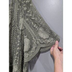 Torrid Women's Lace Kimono Green Duster Floral Open Front Beachy Boho Sz 1/2 XL. Please note the picture quality is very poor for the green color. The true color is what the closer up pictures are, like the name brain tag and material tag. All measurements are approximate.