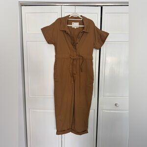Anthropologie Tan Short-Sleeve Jumpsuit