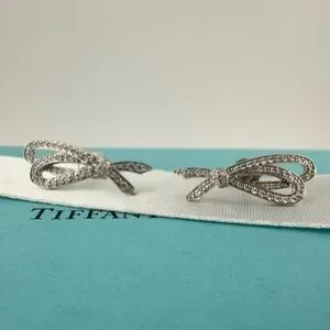 RARE Tiffany & Co. Pave Diamond Bow Earrings 18K White Gold