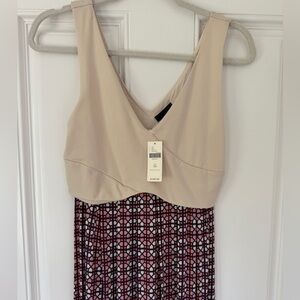 Anthropologie Pink Print Tan Blue Maeve Stretchy Colorblock Elysian Maxi Dress