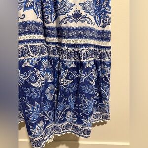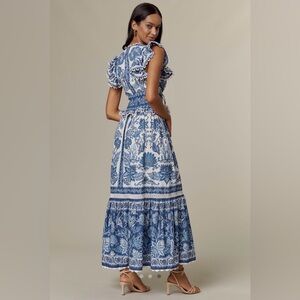 Farm Rio Shell Garden Cotton Ruffle Maxi Dress, NWT