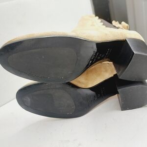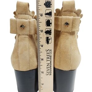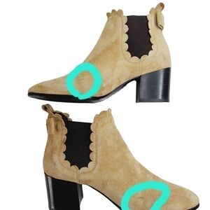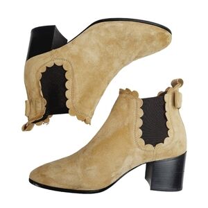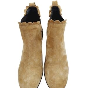 Kate Spade Garden Scalloped Ankle Booties Size 6.5 Tan Suede Pull-On Block Heel. Worn one time. Small improfection highlighted last photo (light scuff mark)