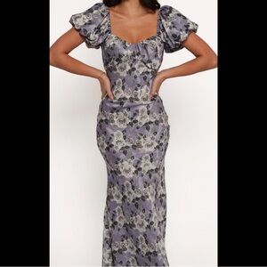 PETAL & PUP Marjorie Sweetheart Neck MIDI Dress Roses Floral Puff Sleeve Sz S