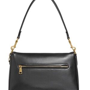 Iconic logo hardware gleams at the front of this versatile and stylish COACH Tabby shoulder bag. Crafted in smooth leather, this bag features two strap options for wear as a shoulder bag or crossbody, or carried as a clutch in hand. Elegant black shoulder bag with striking gold hardware. Perfect for any occasion.