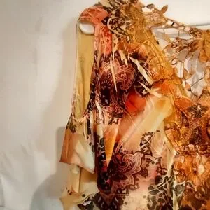 One World Elegant Multicolor Maxi Dress Large Crocheting Fairy Style Pullover