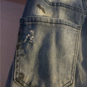 Aphrodite Distressed Straight Leg Jeans in Dark Blue