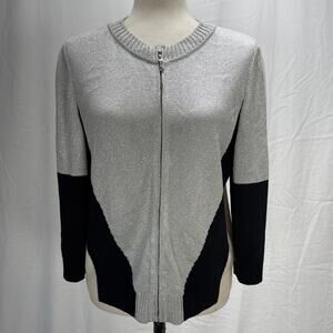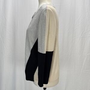 St John SoCa Women's Full Zip Colorblock Sweater Jacket Size M Wool 3/4 Sleeve, St John, SoCa, Women's, Full Zip, Sweater Jacket, Jacket, Size M, Medium, Wool, 3/4 Sleeve, Colorblock, Color Block, Knit, Luxury, Designer, Apparel, Outerwear, Chic, Elegant, Business, Casual, Blend, Cardigan, #stjohn, #designer, #wool, #sweaterjacket, #colorblock, #womensfashion
