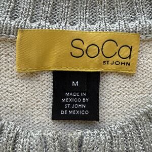 St John SoCa Womens Full Zip Colorblock Sweater Jacket Size M Wool 3/4 Sleeve
