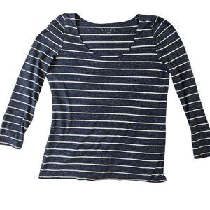 LOFT Blue Gray Heather and White Stripe Knit Nautical Stretch Top