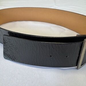 Harold's Leather Patent Wide Black Belt Silver Hardware Women's Size M Vintage