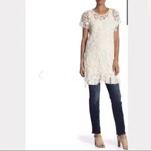 Fit: this style fits true to size. - Crew neck - Sleeveless - Tank underneath - Crochet construction - Approx. 36” length (size S) - Imported