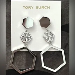 NWOT 🆕 Tory Burch Geo Hexagon Logo Drop Earrings