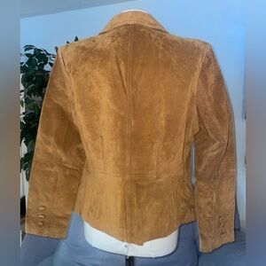 Vintage golden brown Swede jacket by Covington from Sears. Size tag is cut out, fits like a medium. Pit to pit is 20” shoulder to hem is 24” 3 bottons in the front with two front pockets. Good condition!
