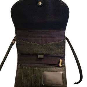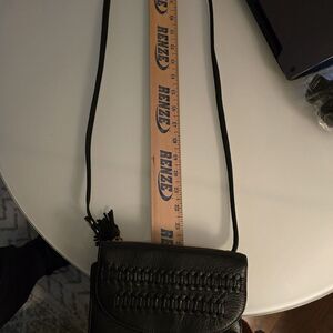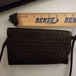 Fossil Black Leather Crossbody Bag Small Credit Card Travel Woven