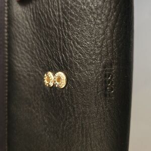 This Fossil crossbody bag is the perfect accessory for any occasion. With a woven pattern and black leather exterior, this bag is both stylish and functional. It features a zip and snap closure, gold hardware, and a black leather handle/strap.