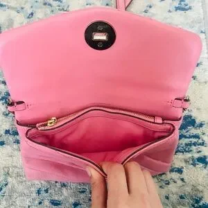 Tory Burch Pink Quilted Crossbody with Gold Chain