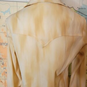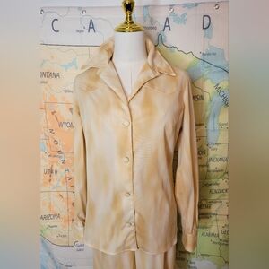 Vintage 1970s tan and cream Western inspired women's Leisuresuit. Size, I believe is M, but all of the measurements are in the photos.